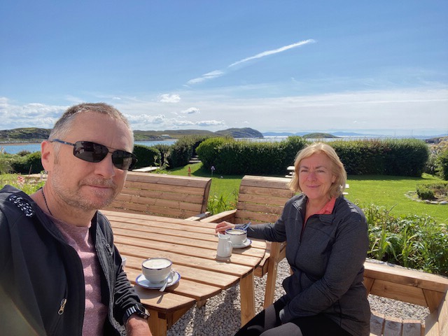 In the evening, although we had some food that we could have cooked, instead we decided to go to the Coll Hotel for dinner. The food and wine there was excellent, as were the views from the restaurant. We shared some olives and focaccia to start, then Paul had a seafood platter and I had a Thai veg curry, finished off by sharing a typical Scottish dessert of cranachan. We were lucky to get a table, but it is worth pre-booking if you can as the hotel restaurant can get very busy.